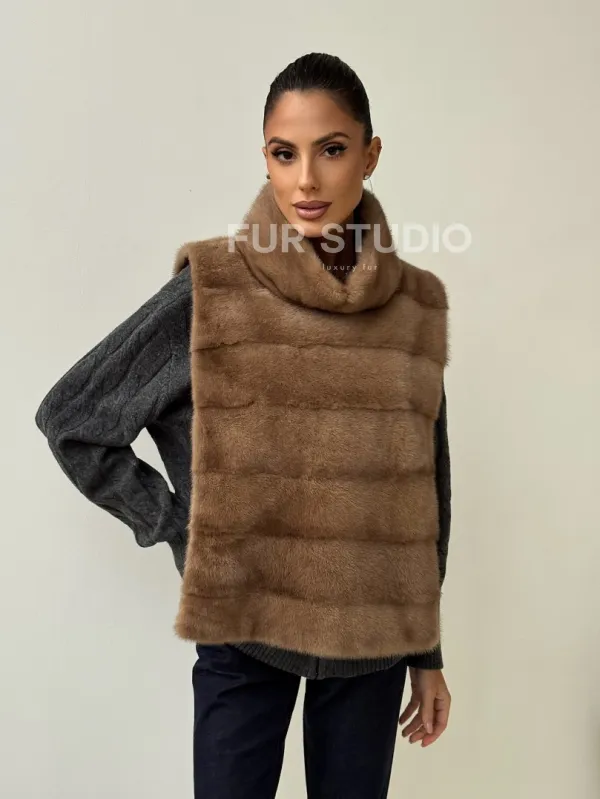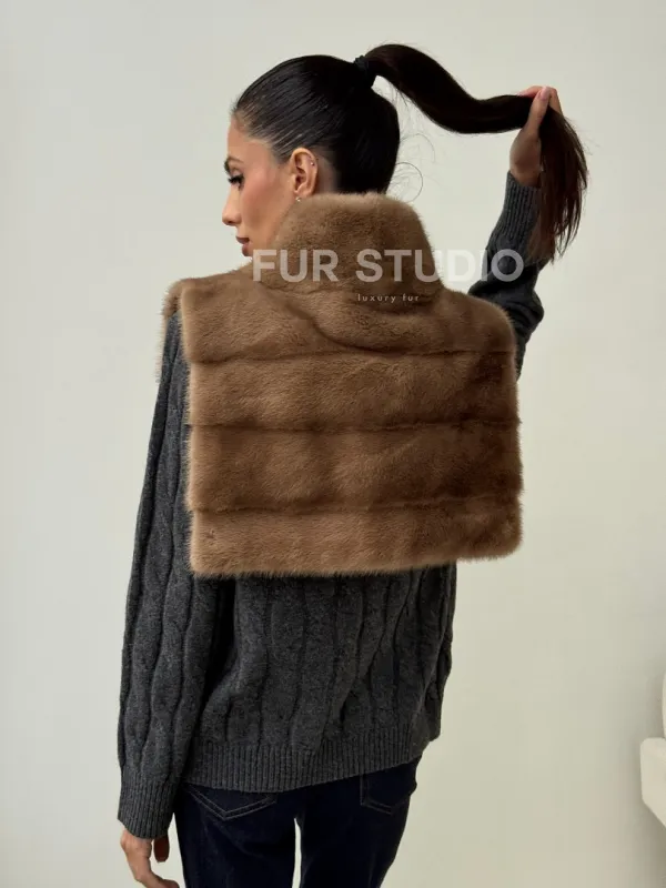 Бежевая норковая манишка 102425