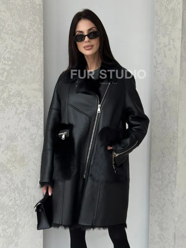 Черная дубленка на тоскане 100740