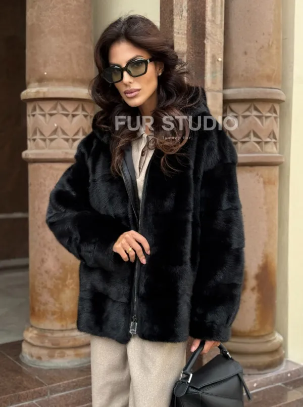 Черная норковая шуба с капюшоном доступна для покупки в нашем магазине Furs Studio в , с возможностью доставки в любой город России. Добавьте немного стиля и элегантности в свой гардероб с этой курткой, которая будет вам служить многие годы, подчеркивая ваш неповторимый стиль.