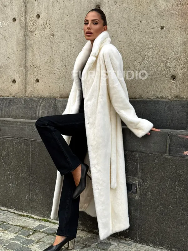 Длинная белая норковая шуба 102111