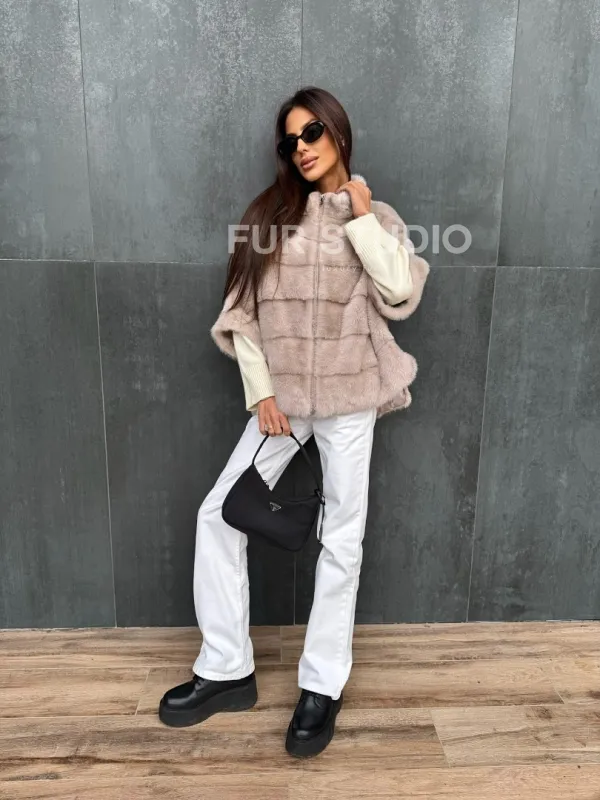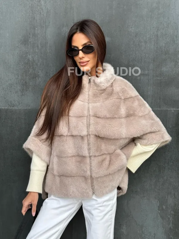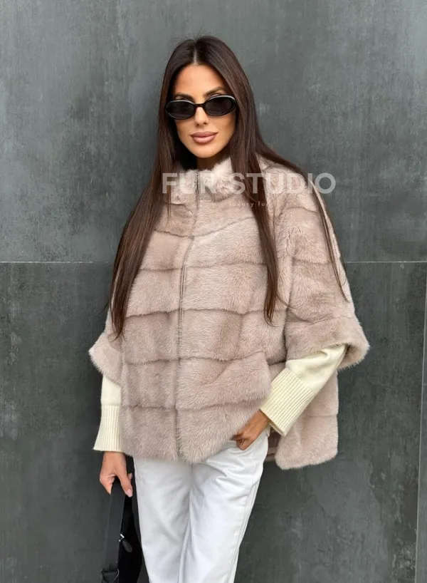Мех данной шубы аукционная норка , цвет бежевый. Предлагается в размерах от 40 до 48 (oversize). Длина модели 60-65 см, что выгодно подчеркивает фигуру девушек. Эта модель идеально подойдет для девушек и женщин, предпочитающих роскошные натуральные меха.