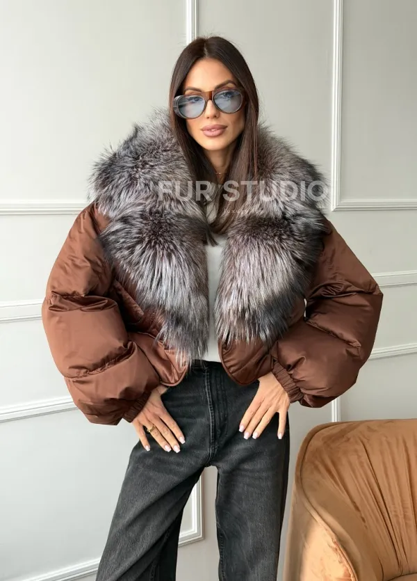 Короткий пуховик с мехом чернобурки 102757