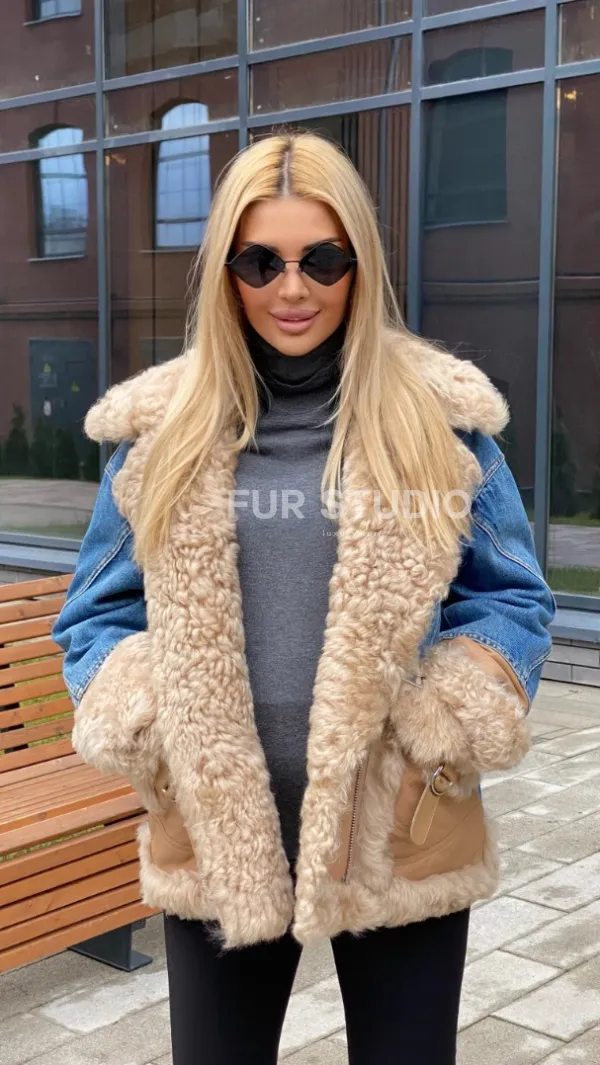 Куртка джинсовая с отделкой из натуральной овчины 100271