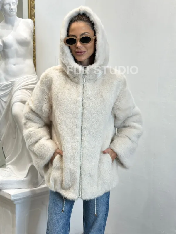 Норковая куртка с капюшоном - цвет ваниль 100797