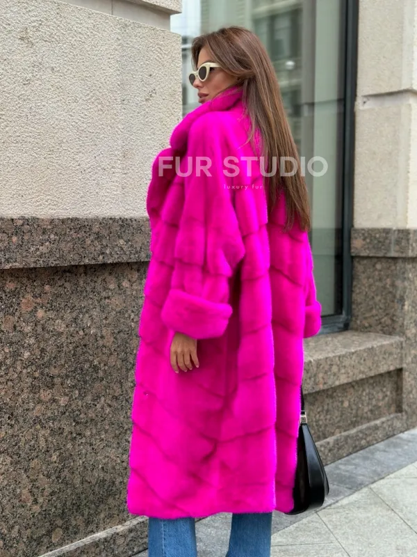 Розовая норковая шуба 100507