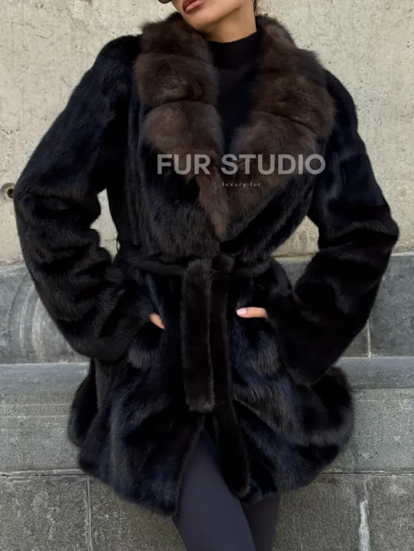 Норковая шуба махагон с куницей доступна для покупки в нашем шоуруме Furs Studio в . У нас так же есть доставка во все города России. Добавьте немного роскоши в свой гардероб с этой шубой, которая будет служить вам многие годы.