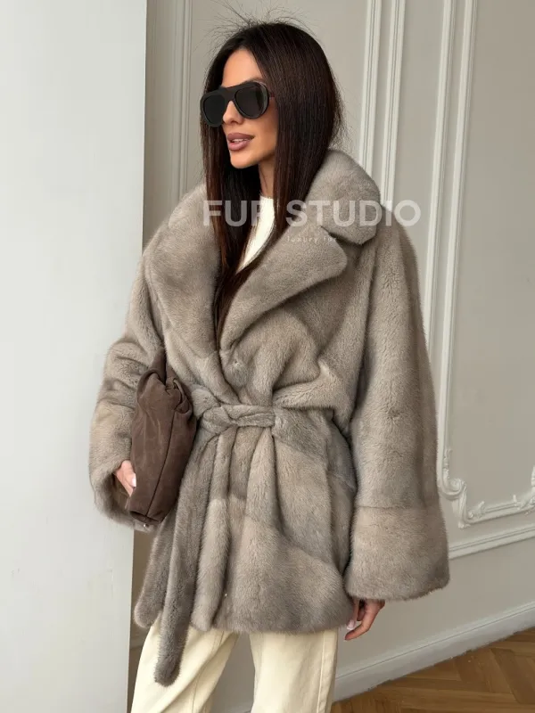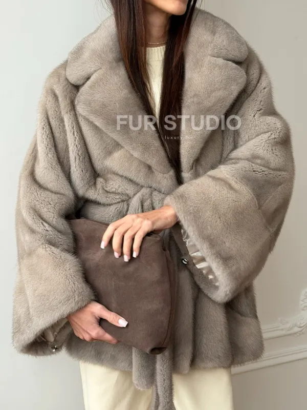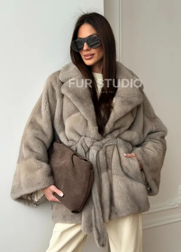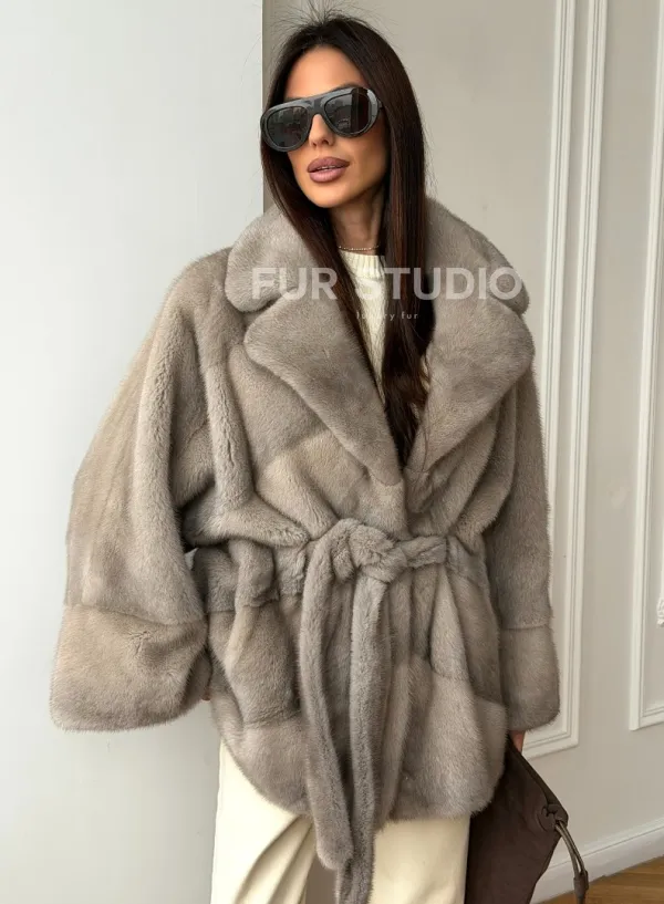 Норковый полушубок в натуральном цвете Silver 102562
