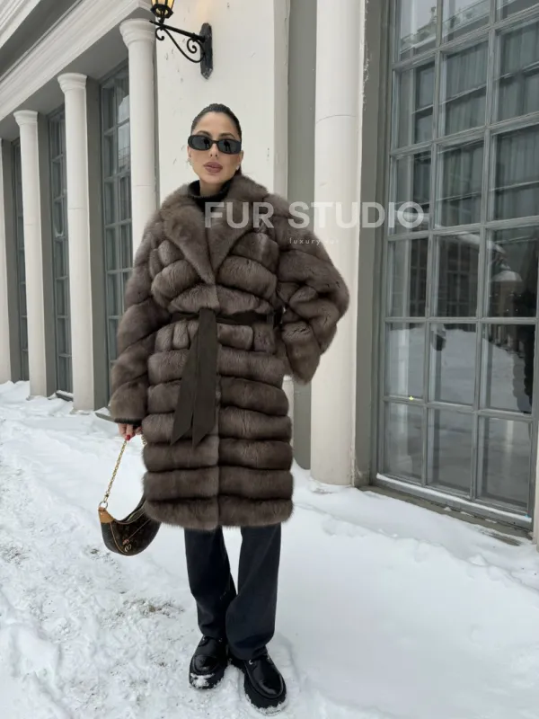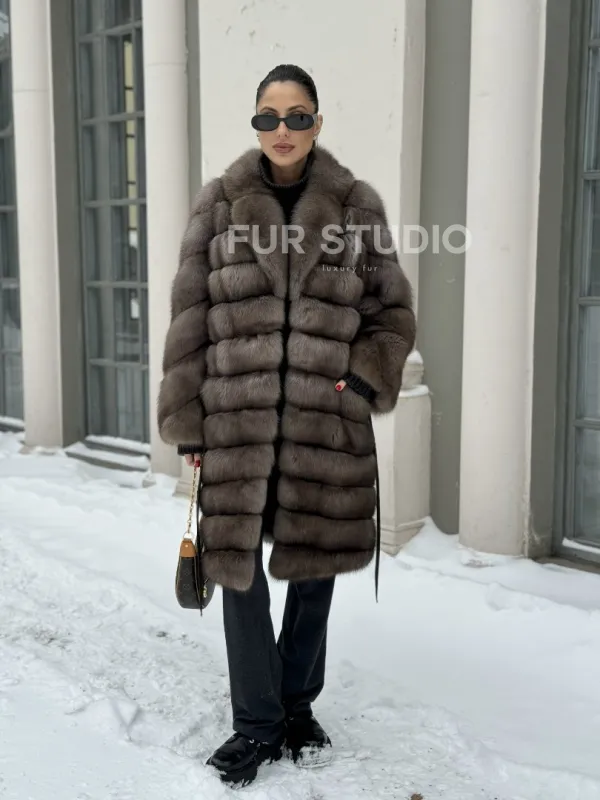 Примерять и купить шубу миди из натурального меха соболя в цвете тортор вы можете в нашем шоуруме студии меха Fur Studio в Москве или у себя дома. Для дистанционного заказа понадобятся мерки, по которым шубу подгонят под особенности фигуры.