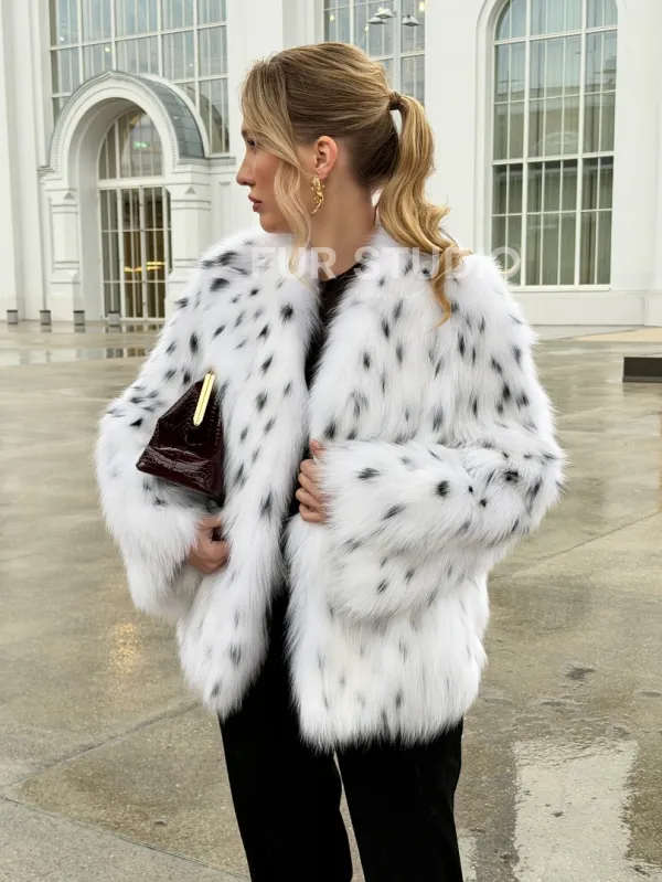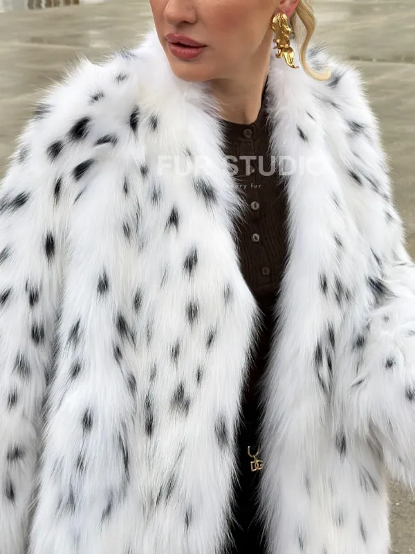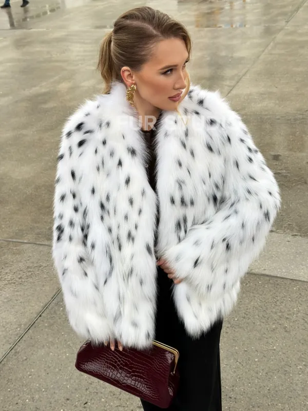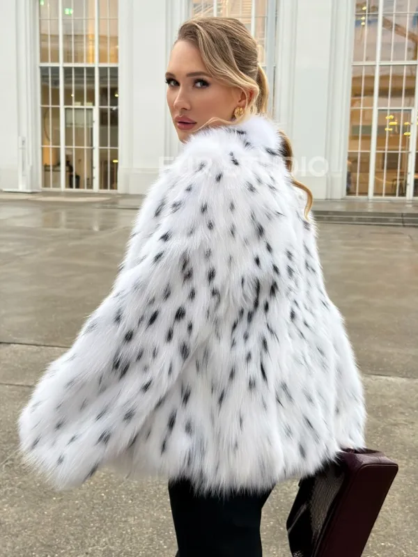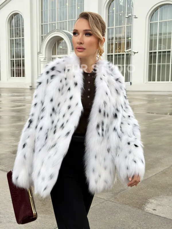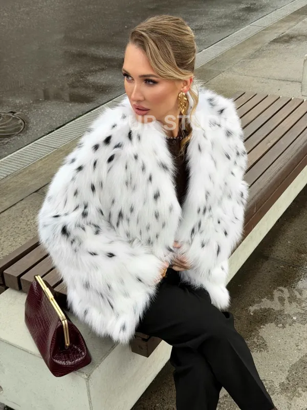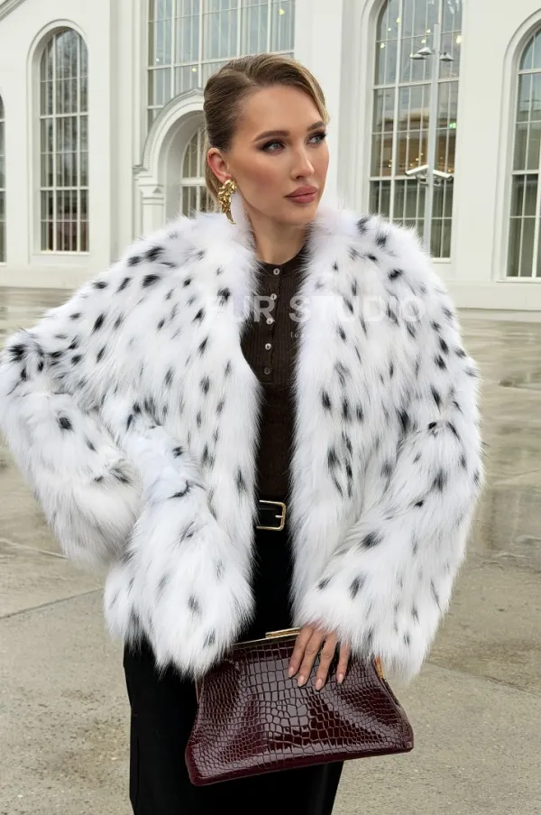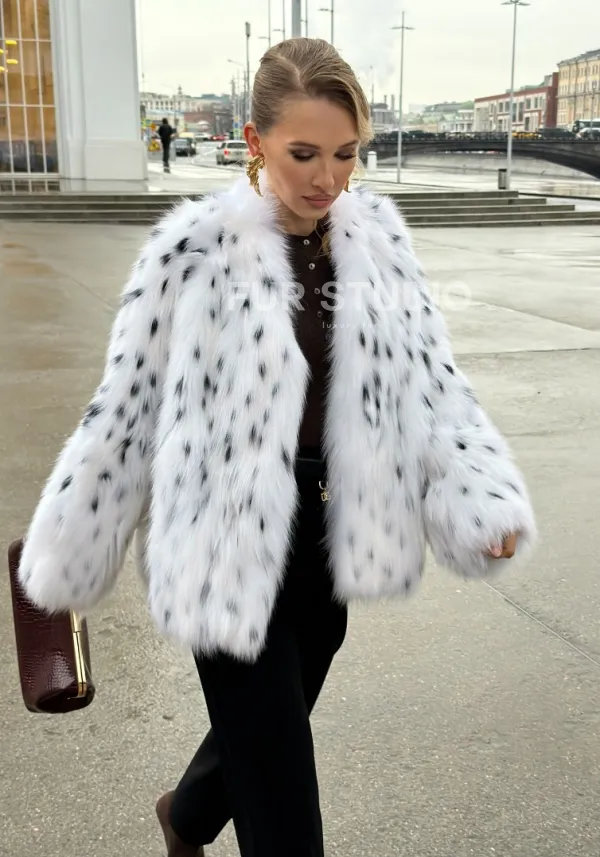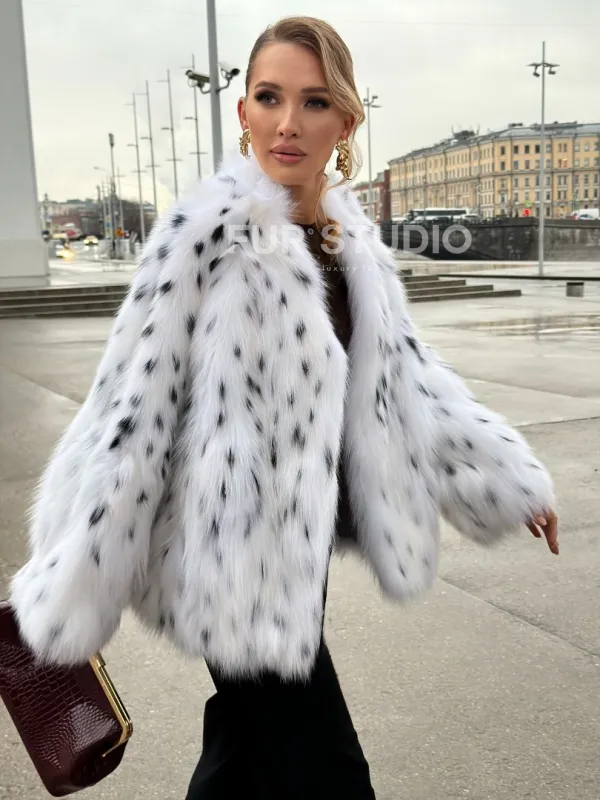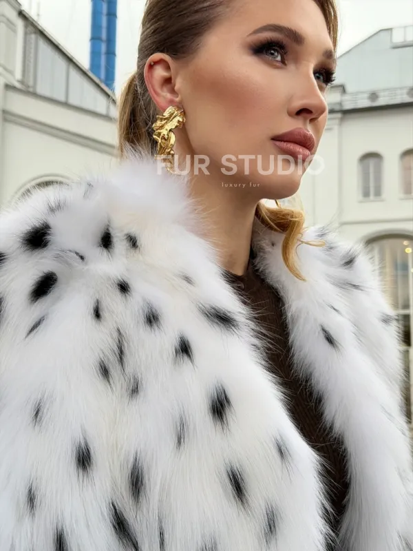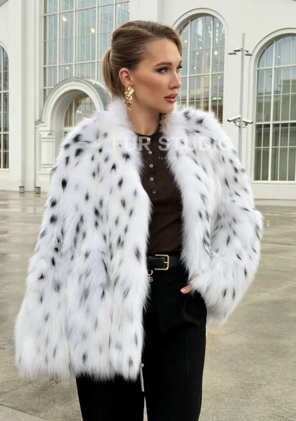 Шуба укороченная из арктической лисы под рысь 102679
