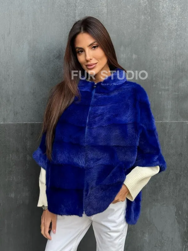Мех данной шубы аукционная норка , цвет синий. Предлагается в размерах от 40 до 48 (oversize). Длина модели 60-65 см, что выгодно подчеркивает фигуру девушек. Эта модель идеально подойдет для девушек и женщин, предпочитающих роскошные натуральные меха.