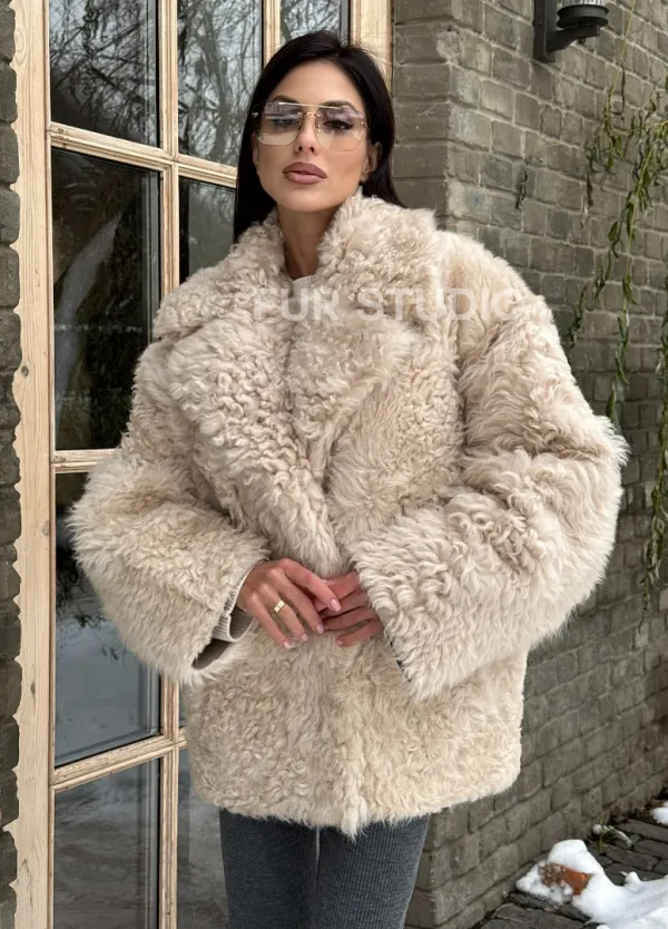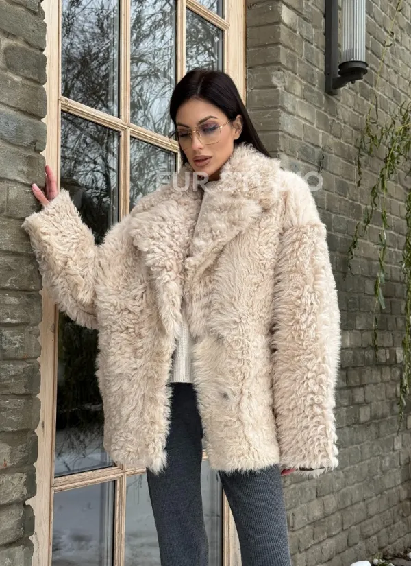 Светлая короткая шуба из испанской овчины 101438